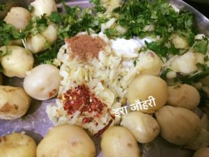 सबसे पहले आलू उबाल ले और हरी मटर के दानो को हीग जीरे मिर्च से छौक कर नमक , मिला कर पका कर अदरक व हरीधनिया मिलाये