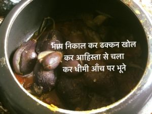 भाप निकाल कर ढक्कन खोल कर आहिस्ता से चला कर धीमी आँच पर भूने